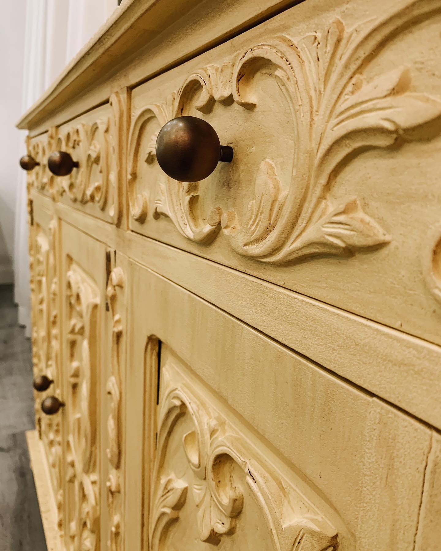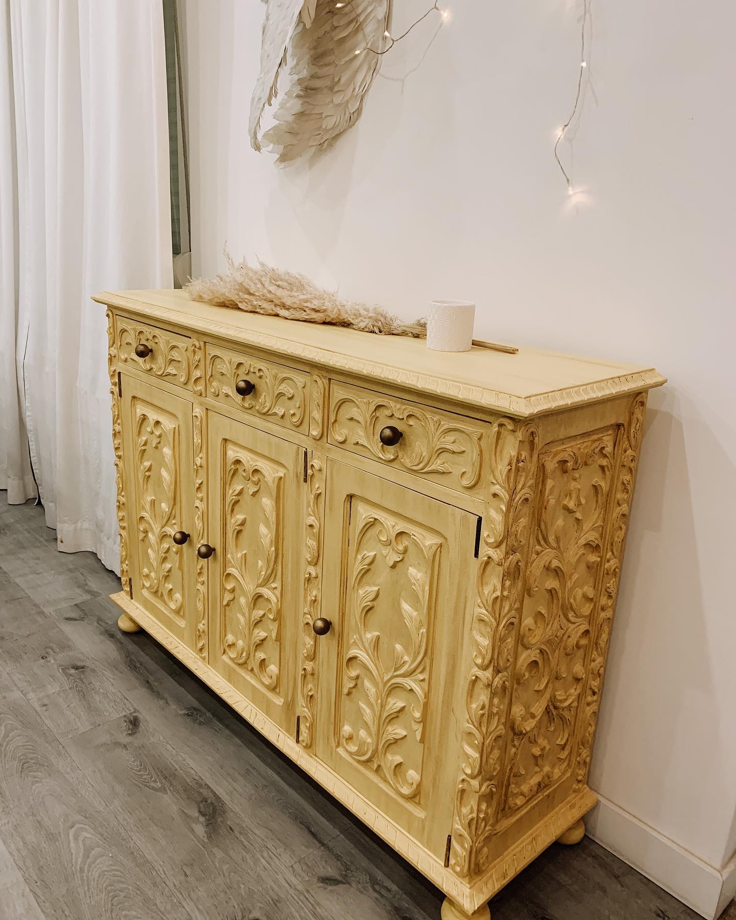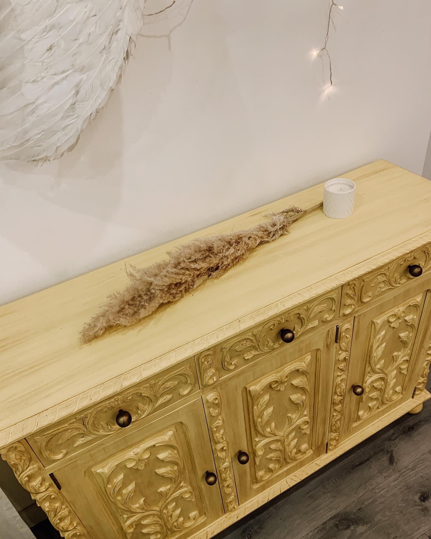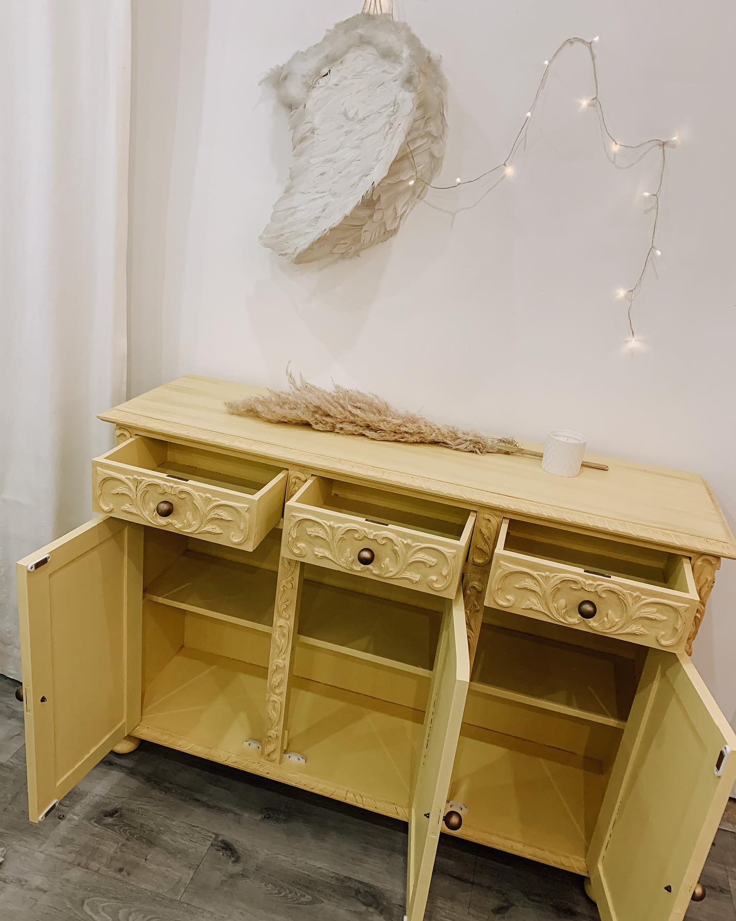 A minha Cliente adquiriu este Aparador já em 2a mão e começou a recupera-lo em Casa mas acabou por não terminar a Recuperação.